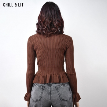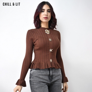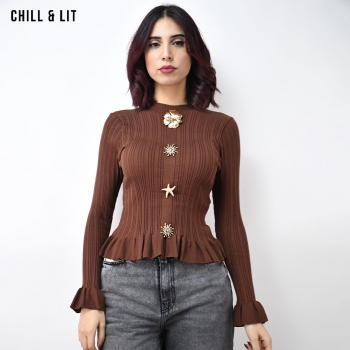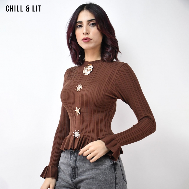 Pull Court Rayé en Laine pour Femme, à Manches Longues et Col Rond. Hyper Tendance .