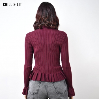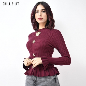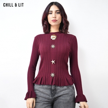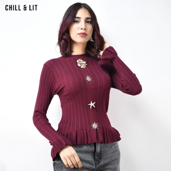 Pull Court Rayé en Laine pour Femme, à Manches Longues et Col Rond. Hyper Tendance .
