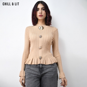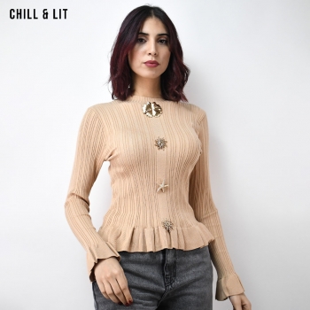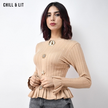 Pull Court Rayé en Laine pour Femme, à Manches Longues et Col Rond. Hyper Tendance .