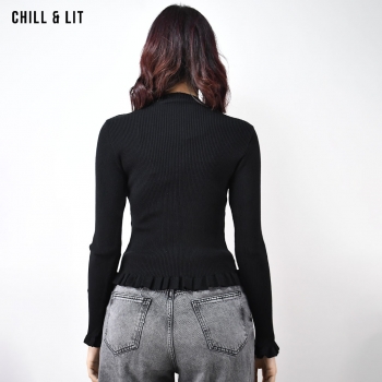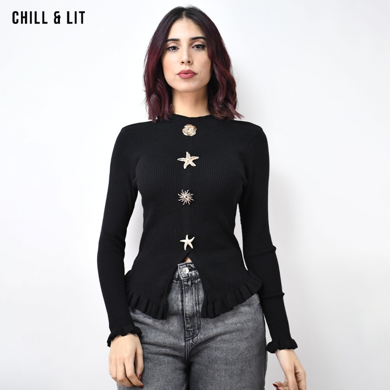 Pull Court Rayé en Laine pour Femme, à Manches Longues et Col Rond. Hyper Tendance .
