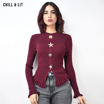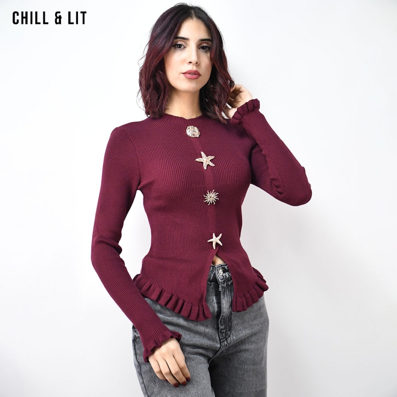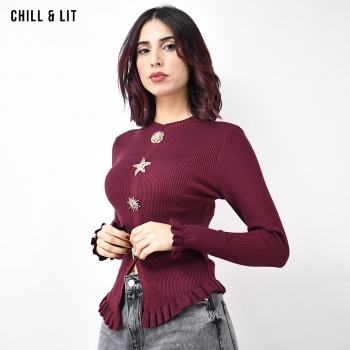 Pull Court Rayé en Laine pour Femme, à Manches Longues et Col Rond. Hyper Tendance .