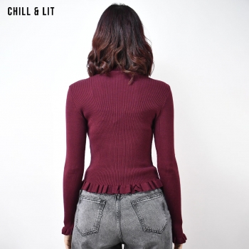 Pull Court Rayé en Laine pour Femme, à Manches Longues et Col Rond. Hyper Tendance .
