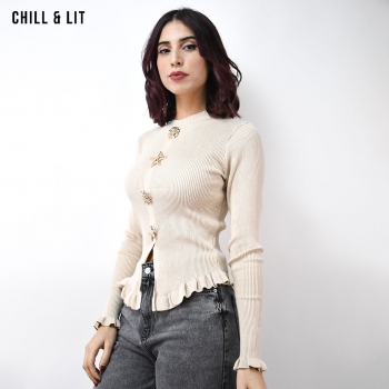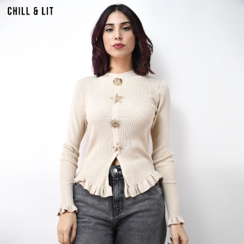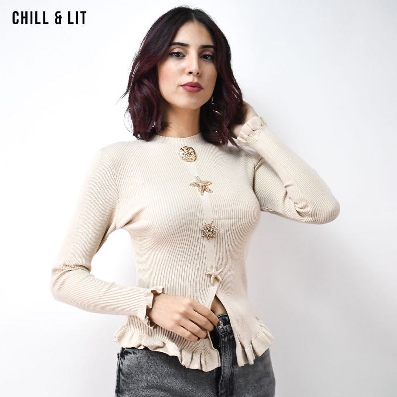 Pull Court Rayé en Laine pour Femme, à Manches Longues et Col Rond. Hyper Tendance .