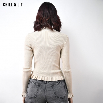 Pull Court Rayé en Laine pour Femme, à Manches Longues et Col Rond. Hyper Tendance .