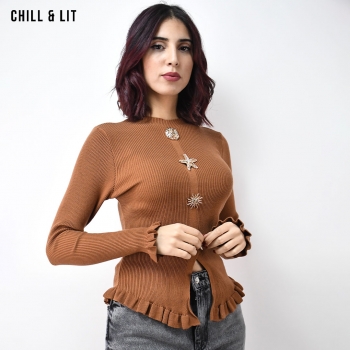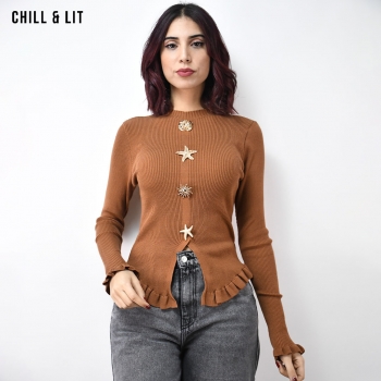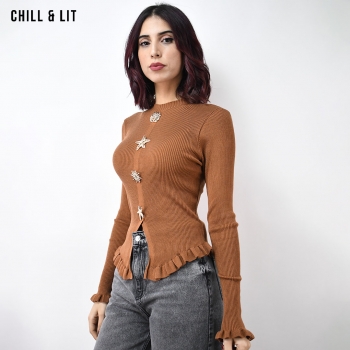 Pull Court Rayé en Laine pour Femme, à Manches Longues et Col Rond. Hyper Tendance .