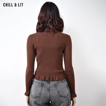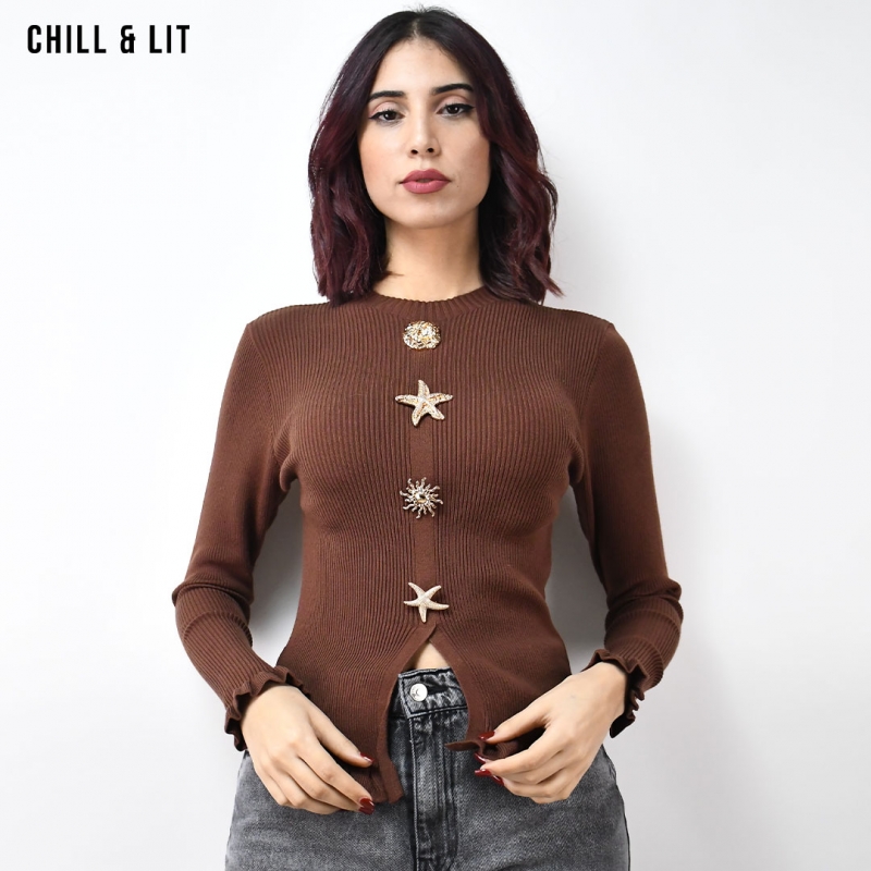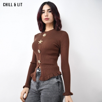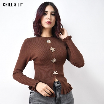 Pull Court Rayé en Laine pour Femme, à Manches Longues et Col Rond. Hyper Tendance .