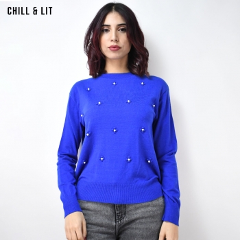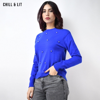 Pull en Laine Femme à Manches Longues, Col Rond. Hyper Tendance en ce Moment en Ligne sur Chill&Lit. Le Mannequin Porte La Taille Standard.