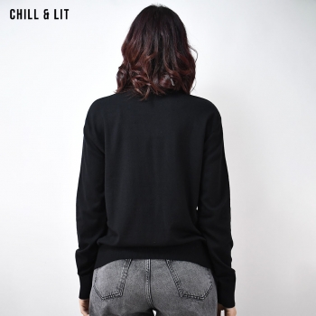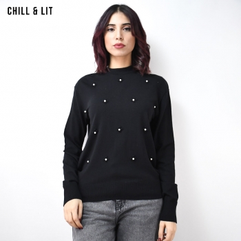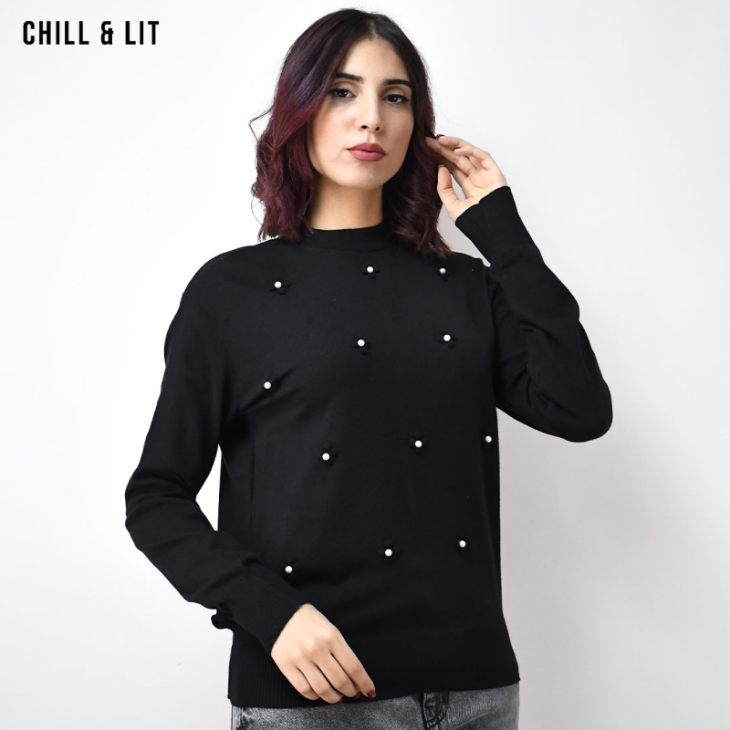 Pull en Laine Femme à Manches Longues, Col Rond. Hyper Tendance en ce Moment en Ligne sur Chill&Lit. Le Mannequin Porte La Taille Standard.