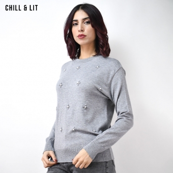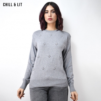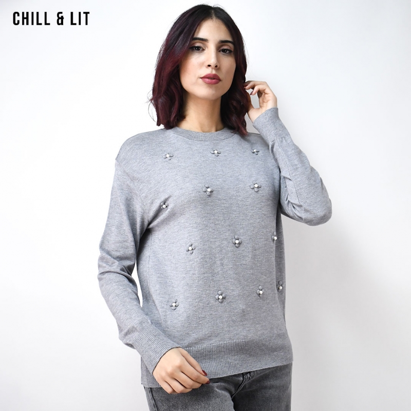 Pull en Laine Femme à Manches Longues, Col Rond. Hyper Tendance en ce Moment en Ligne sur Chill&Lit. Le Mannequin Porte La Taille Standard.