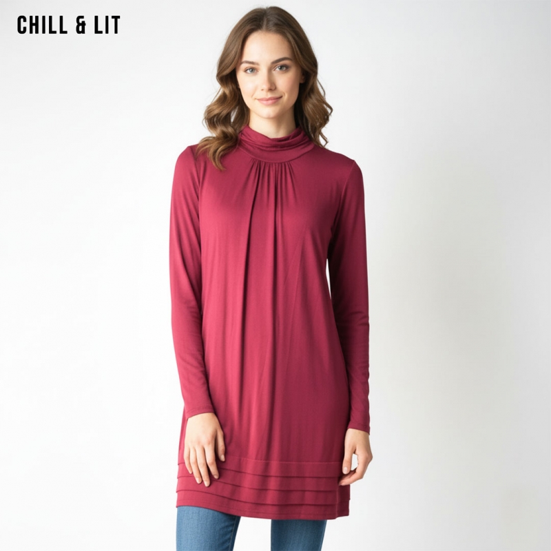 Pull long pour Femme avec Manches Longues , Col Montant. Hyper Tendance en ce moment.