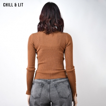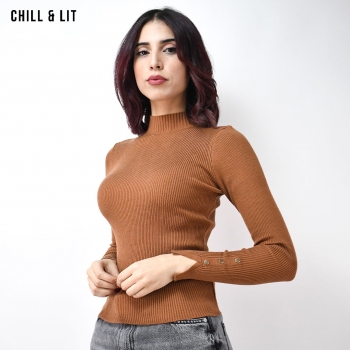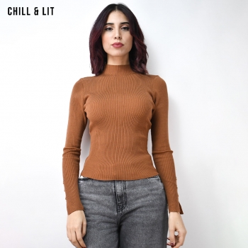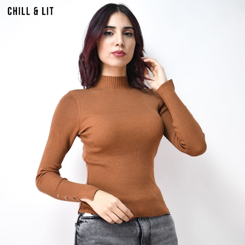 Pull en Laine Femme Manches Longues, Col Montant Hyper Tendance en ce Moment. Le Mannequin Porte La Taille Standard.