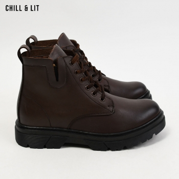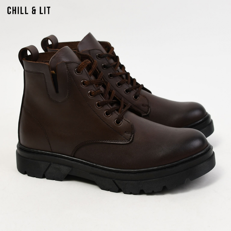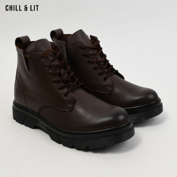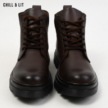 Bottines en Vrai Cuir pour Homme à Enfiler, Hauteur de la Tige 11.5cm, Hauteur Semelle 4cm. Hyper Tendances . Pointure sur la photo: 40.