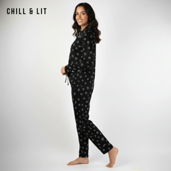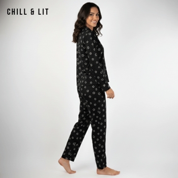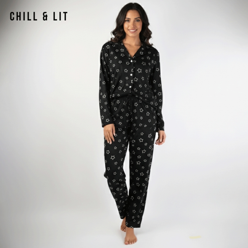 Pyjama pour Femme Confortable et Elégant, composé de 2 Pièces : d’un Pantalon Large et d’une Chemise Assortie. Parfait pour des Nuits Confortables. Le Mannequin Porte La Taille S/M et Mesure 1m78.