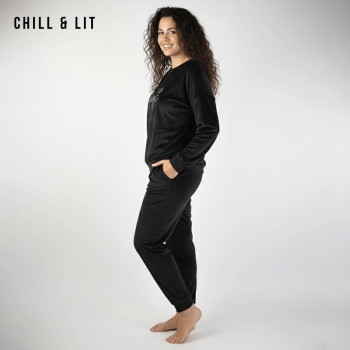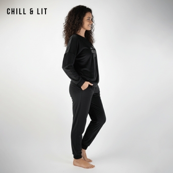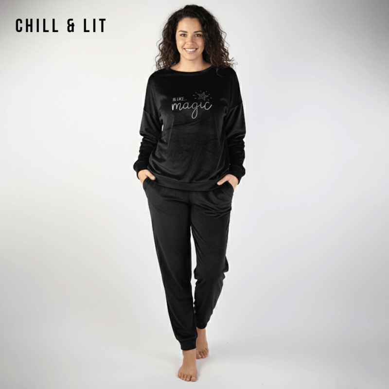 Pyjama Femme 2 Pièces Pull à Graphique Avec Manches Longues  + Pantalon Hyper Confortables. Le Mannequin Porte La Taille S et Mesure 1m78.
