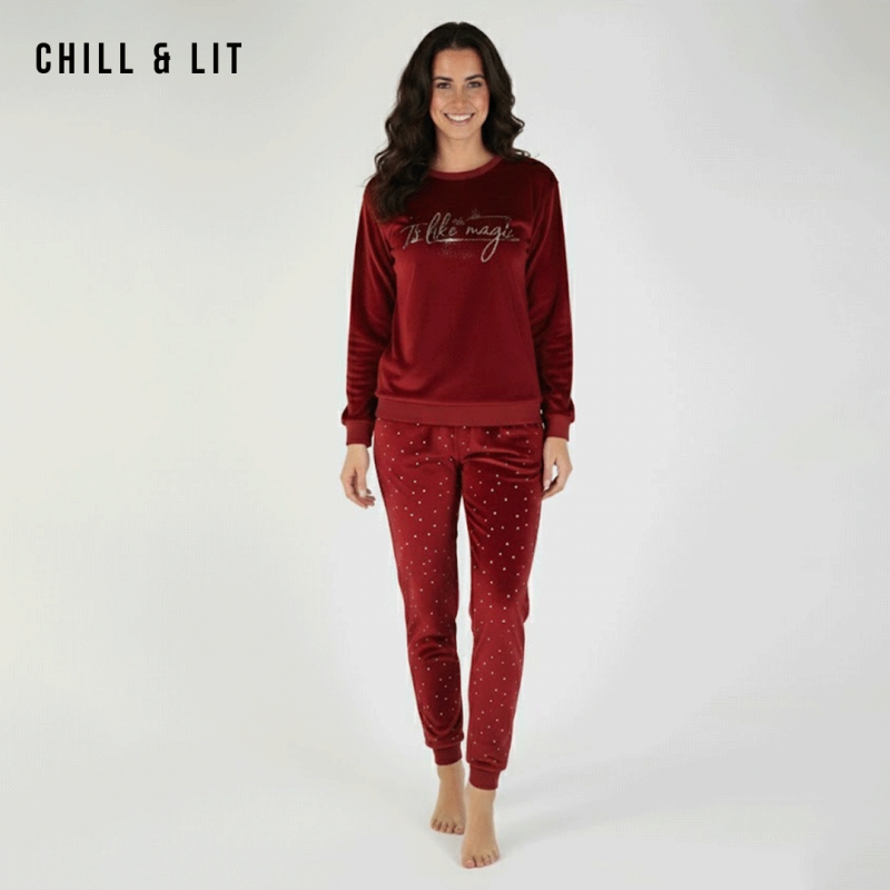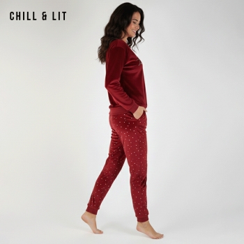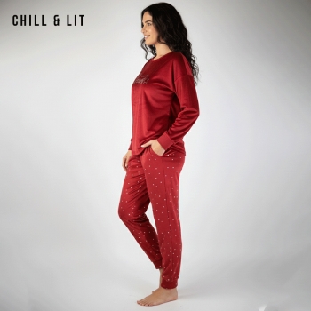 Pyjama Femme 2 Pièces Pull à Graphique Avec Manches Longues  + Pantalon Hyper Confortables. Le Mannequin Porte La Taille S et Mesure 1m78.