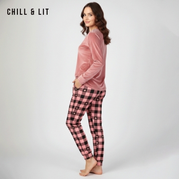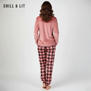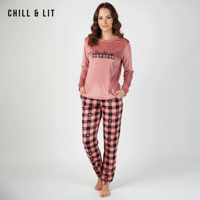 Pyjama Femme 2 Pièces Pull à Graphique Avec Manches Longues + Pantalon Hyper Confortables. Le Mannequin Porte La Taille S et Mesure 1m78.
