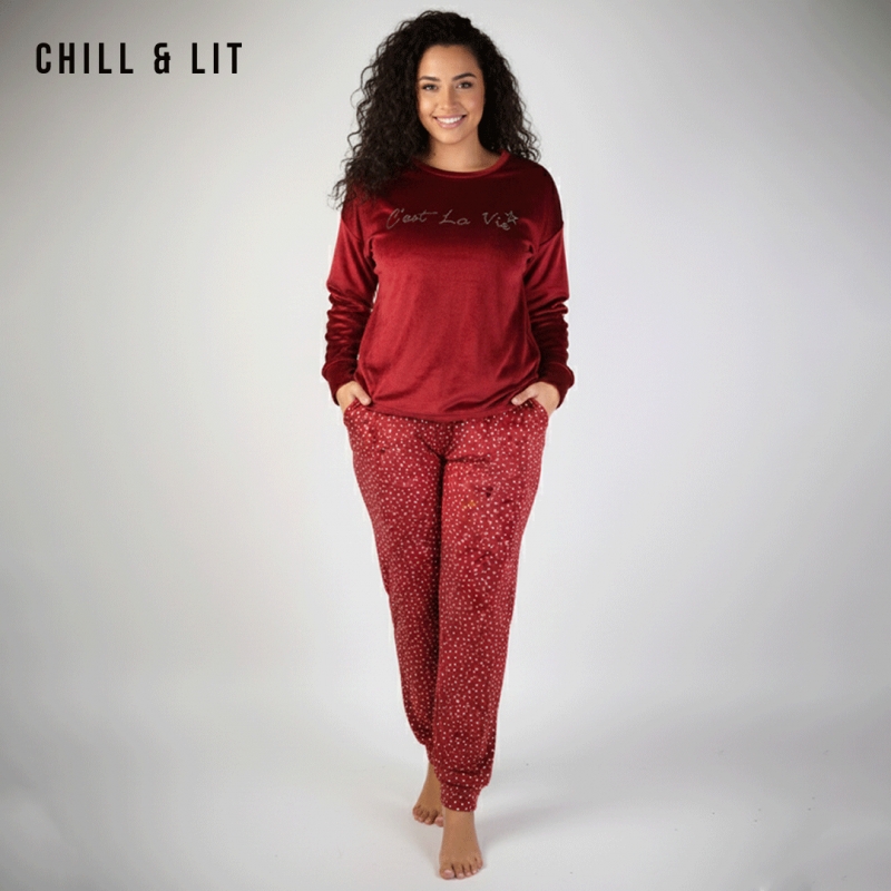 Pyjama Femme 2 Pièces Pull à Graphique Avec Manches Longues  + Pantalon Hyper Confortables. Le Mannequin Porte La Taille S et Mesure 1m78.