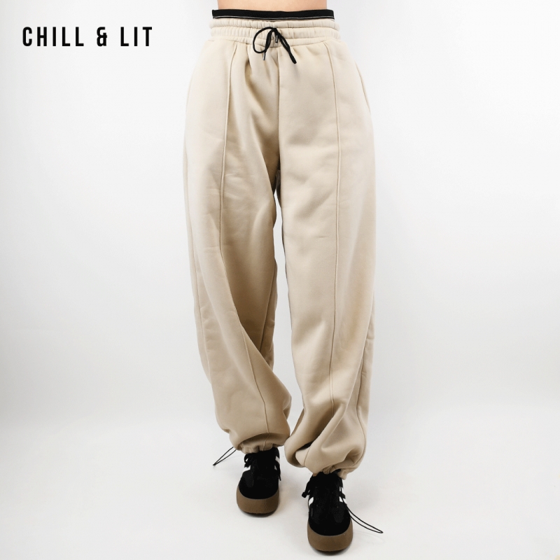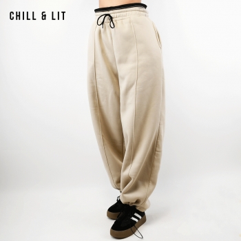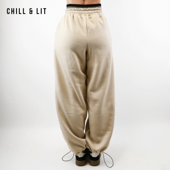 Pantalon Jogging baggy Large Taille Haute Ajustable à La Taille avec Cordant Super Tendances cette Saison. Le Mannequin Porte La Taille M et Mesure 1m75.
