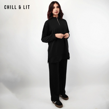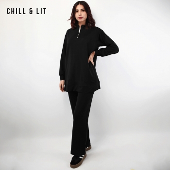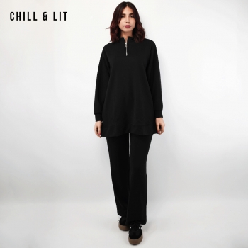 Ensemble Survêtement Femme Pull col montant Avec Fermeture Glissière. Pantalon Coupe Large Ajustable à La Taille. Super Tendance . Le Mannequin Porte La Taille 42 et Mesure 1m78.