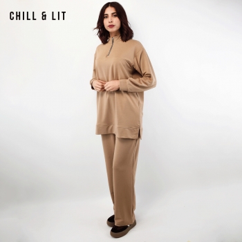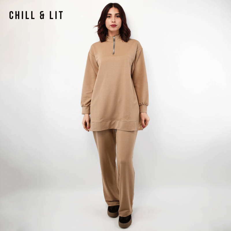 Ensemble Survêtement Femme Pull col montant Avec Fermeture Glissière. Pantalon Coupe Large Ajustable à La Taille. Super Tendance . Le Mannequin Porte La Taille 42 et Mesure 1m78.