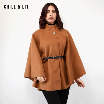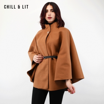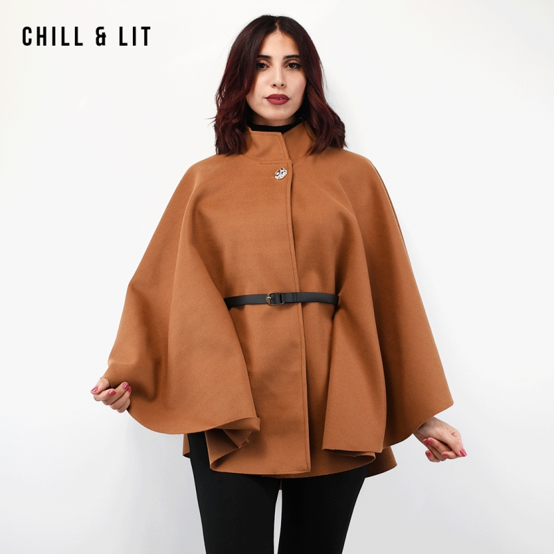 Cape Femme Fluide, évasée et Confortable, Dotée d’un Col Montant élégant, d’un Bouton en Acier Inoxydable et d’une Ceinture à la Taille pour Sublimer la Silhouette. Une Pièce Chic et Moderne, Parfaite pour un Look Raffiné au Quotidien. Super Tendance cet Hiver. Le Mannequin Porte La Taille Standard et Mesure 1m78.