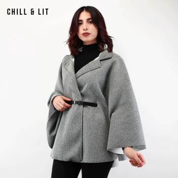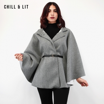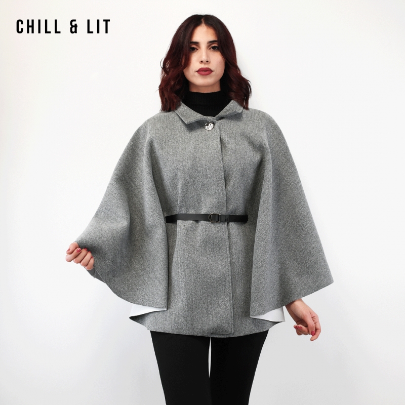 Cape Femme Fluide, évasée et Confortable, Dotée d’un Col Montant élégant, d’un Bouton en Acier Inoxydable et d’une Ceinture à la Taille pour Sublimer la Silhouette. Une Pièce Chic et Moderne, Parfaite pour un Look Raffiné au Quotidien. Super Tendance cet Hiver. Le Mannequin Porte La Taille Standard et Mesure 1m78.