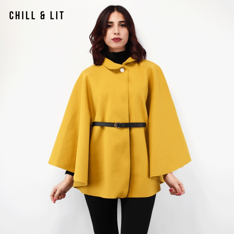 Cape Femme Fluide, évasée et Confortable, Dotée d’un Col Montant élégant, d’un Bouton en Acier Inoxydable et d’une Ceinture à la Taille pour Sublimer la Silhouette. Une Pièce Chic et Moderne, Parfaite pour un Look Raffiné au Quotidien. Super Tendance cet Hiver. Le Mannequin Porte La Taille Standard et Mesure 1m78.