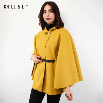 Cape Femme Fluide, évasée et Confortable, Dotée d’un Col Montant élégant, d’un Bouton en Acier Inoxydable et d’une Ceinture à la Taille pour Sublimer la Silhouette. Une Pièce Chic et Moderne, Parfaite pour un Look Raffiné au Quotidien. Super Tendance cet Hiver. Le Mannequin Porte La Taille Standard et Mesure 1m78.