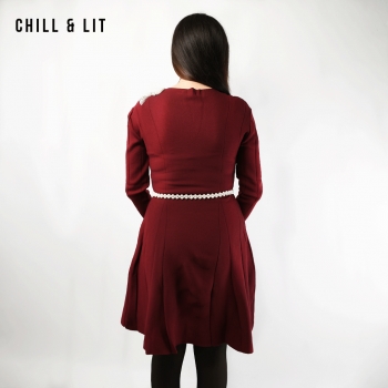 Robe de Soirée Femme mi-Longue, Manches Longues, Col Carré, avec Ceinture Ornée de Perles. Hyper Tendances cet été. Le Mannequin Porte La Taille Standard. Mesure 1.78cm.