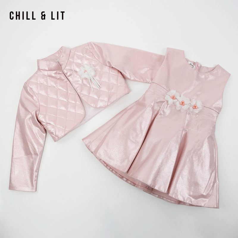 Ensemble Fillette 2 Pièces Robe Sans Manches + Veste ornée d’une broche fleur de Style Chic et Décontracté Confectionné Dans Une Matière Douce et Agréable à Porter, Il Offre un Confort Optimal Tout En Restant élégant. L'ensemble sur La Photo est La taille 2ans.