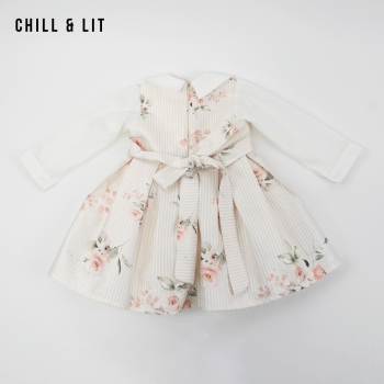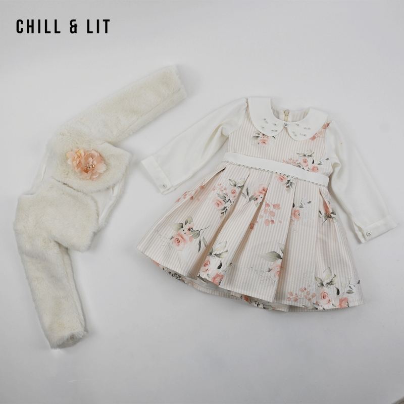 Ensemble Fillette 2 Pièces Robe à Manches Longue avec Col chemise orné de perles  + Veste ornée d’une broche fleur de Style Chic et Décontracté Confectionné Dans Une Matière Douce et Agréable à Porter, Il Offre un Confort Optimal Tout En Restant élégant. L'ensemble sur La Photo est La taille 1an.