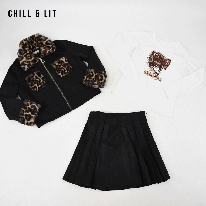 Ensemble Fillette 3 Pièces Veste en Daim + pull à Manches Longues + Jupe en Daim de Style Chic Confectionné Dans Une Matière Douce et Agréable à Porter, Il Offre un Confort Optimal Tout En Restant élégant. L'ensemble sur La Photo est La taille 6ans.