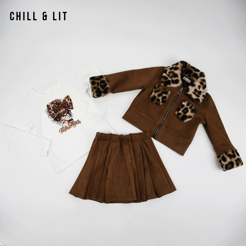 Ensemble Fillette 3 Pièces Veste en Daim + pull à Manches Longues + Jupe en Daim de Style Chic Confectionné Dans Une Matière Douce et Agréable à Porter, Il Offre un Confort Optimal Tout En Restant élégant. L'ensemble sur La Photo est La taille 6ans.