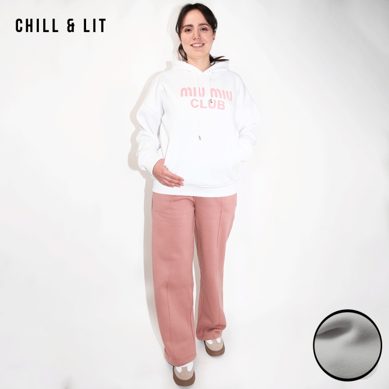 Ensemble Survêtement Femme en Molleton Gratté. Sweat à Capuche Confectionné dans un Tissu Doux et Chaud, Offrant une Coupe Moderne, avec Poche kangourou et Cordons ajustables + Pantalon Coupe Large, Ajustable à la taille avec Cordons, Deux poches. Très tendance. Le Mannequin Porte La Taille M et Mesure 1m78.