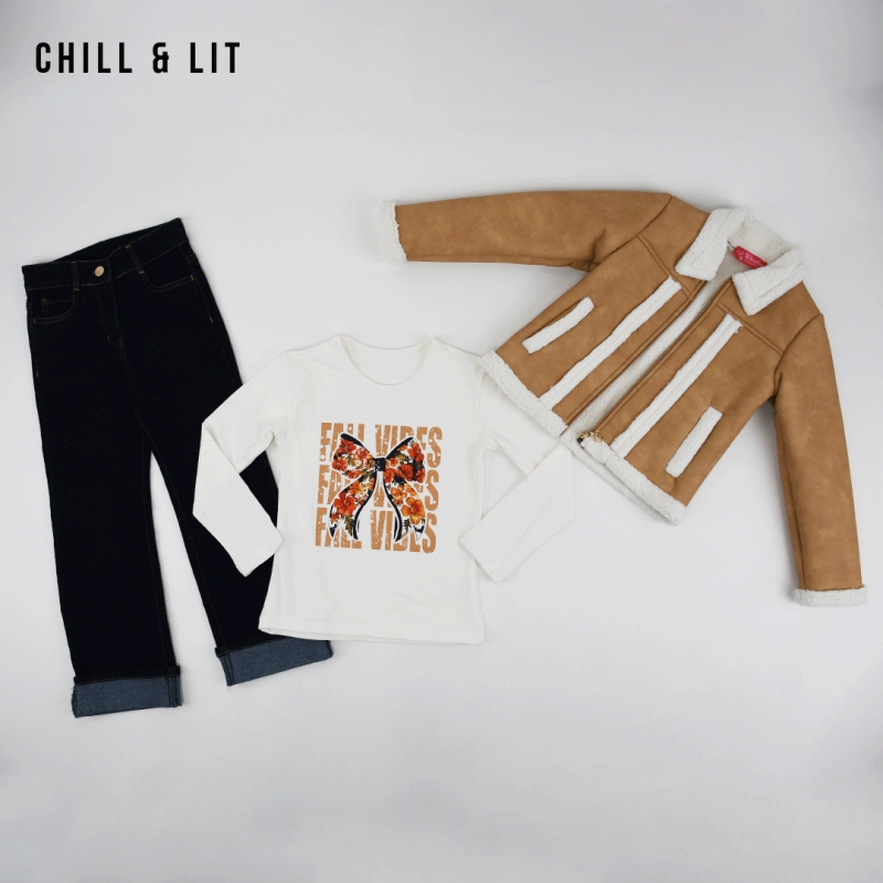 Ensemble Fillette 3 Pièces Veste avec doublure + Pull à Manches Longues + Jean Large de Style Chic Confectionné Dans Une Matière Douce et Agréable à Porter, Il Offre un Confort Optimal Tout En Restant élégant. L'ensemble sur La Photo est La taille 8ans.