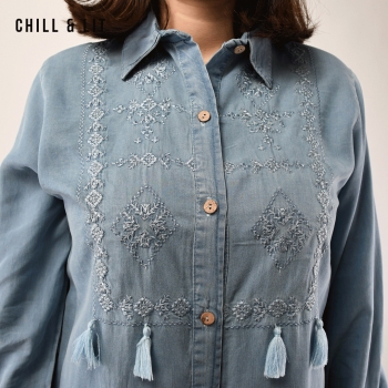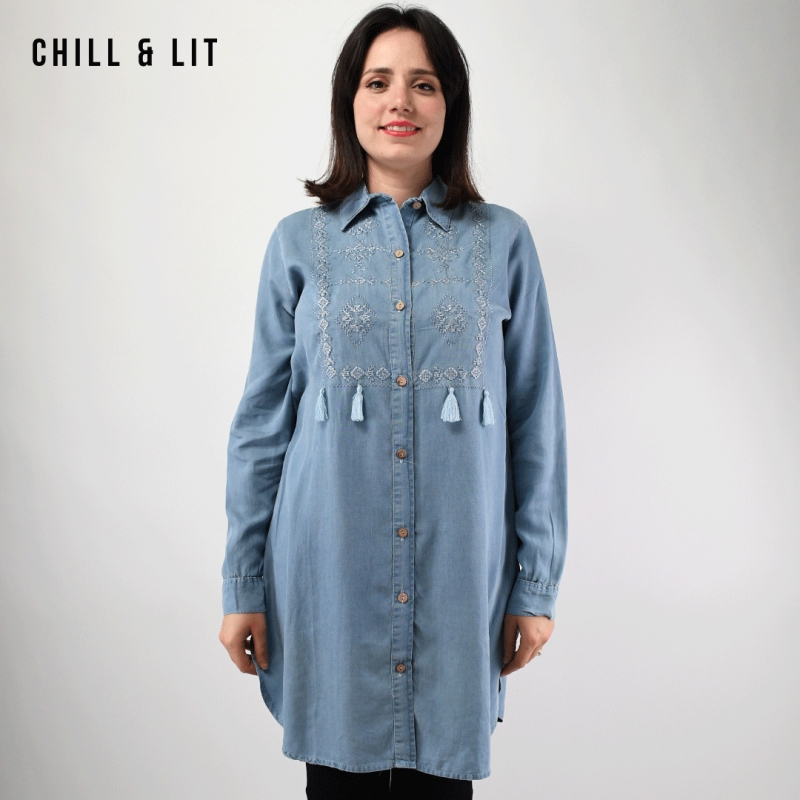 chemise longue pour femme Brodée avec Manches Longues Très Tendance en Ce Moment. Le Mannequin Porte La Taille 3. g