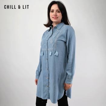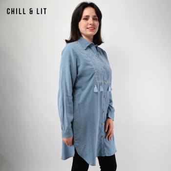 chemise longue pour femme Brodée avec Manches Longues Très Tendance en Ce Moment. Le Mannequin Porte La Taille 3.