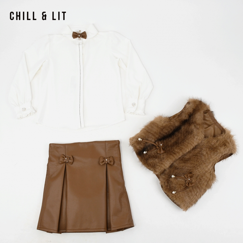 Ensemble Fillette 3 Pièces Veste en Fourrure sans Manches + Chemise + Jupe en Cuir de Style Chic Confectionné Dans Une Matière Douce et Agréable à Porter, Il Offre un Confort Optimal Tout En Restant élégant. L'ensemble sur La Photo est La taille 3ans.
