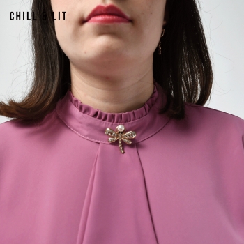 chemise pour femme avec Manches Longues, Une Broche. Très Tendance en Ce Moment. Le Mannequin Porte La Taille 3.