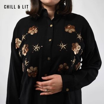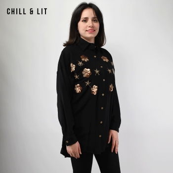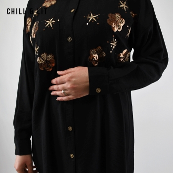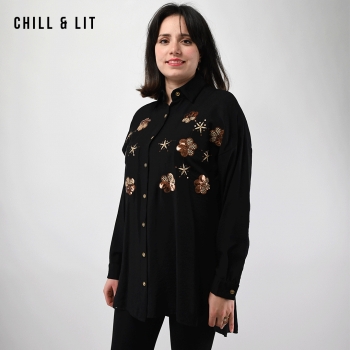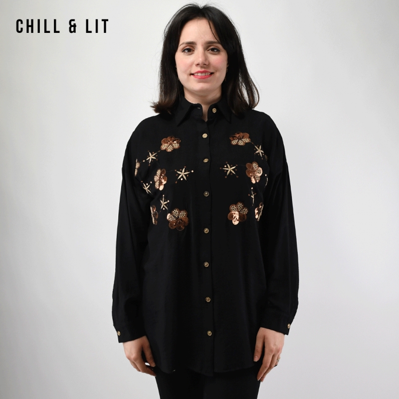 chemise brodée pour femme avec Manches Longues. Très Tendance en Ce Moment. Le Mannequin Porte La Taille 38.