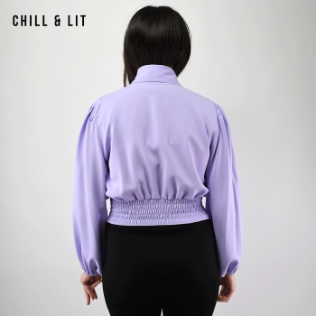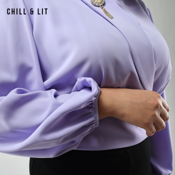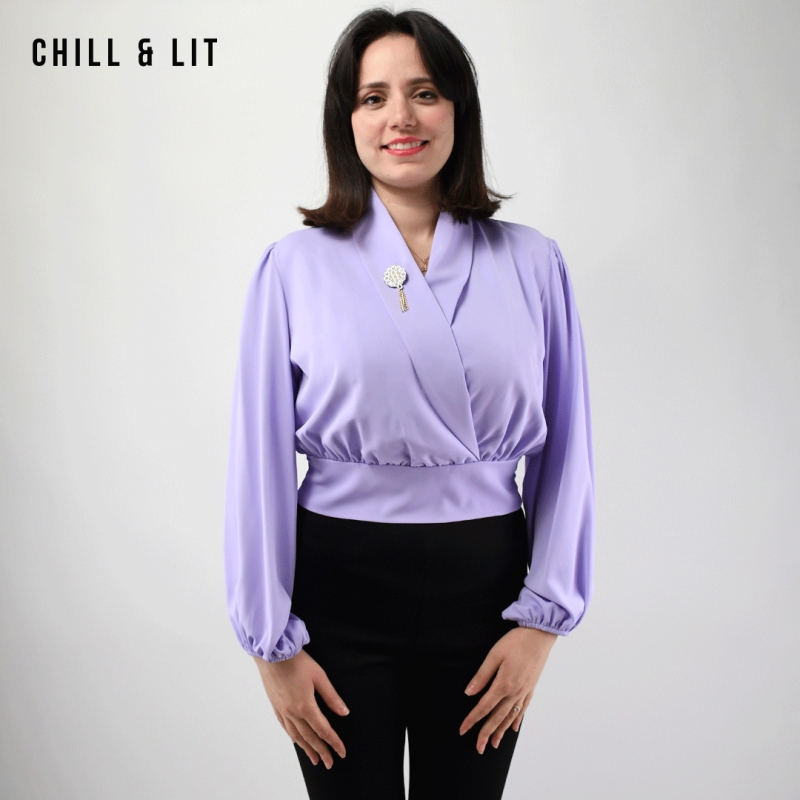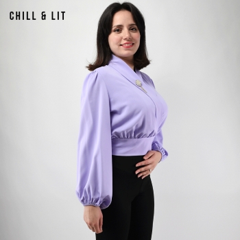 Chemise Courte pour Femme avec Manches Longues Bouffantes, Une Broche. Très Tendance en Ce Moment. Le Mannequin Porte La Taille 2.