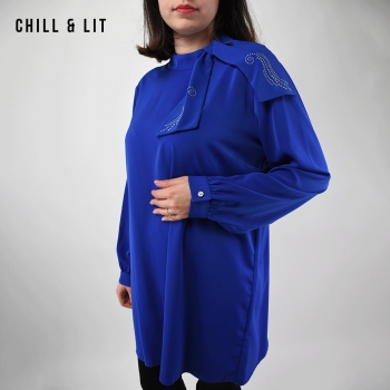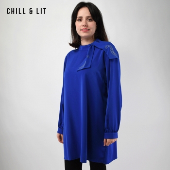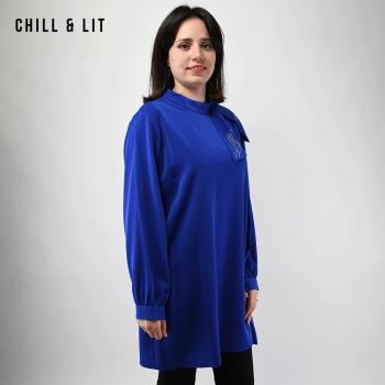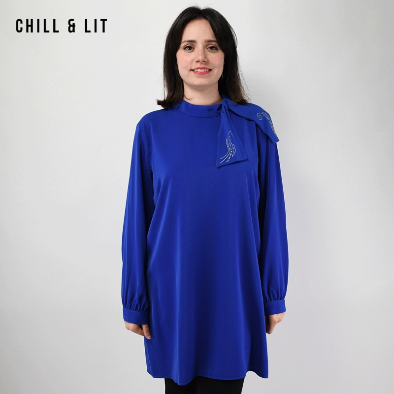 Chemise Longue pour Femme avec Manches Longues Bouffantes. Très Tendance en Ce Moment. Le Mannequin Porte La Taille 4.