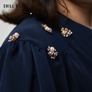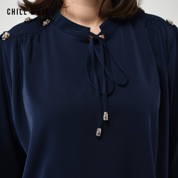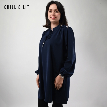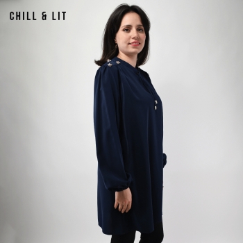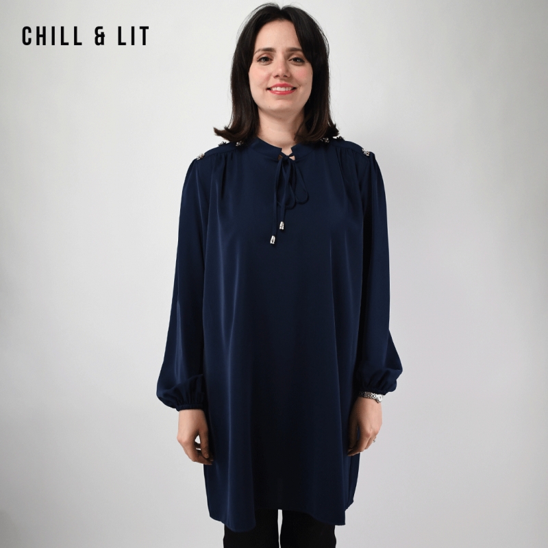 Chemise Longue pour Femme avec Manches Longues, Ornée de Perles Aux épaules. Très Tendance en Ce Moment. Le Mannequin Porte La Taille 4.