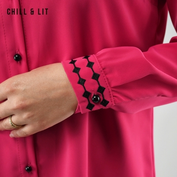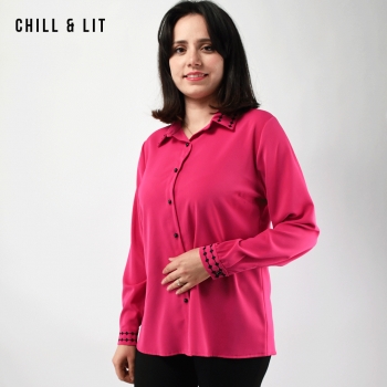 Chemise Longue pour Femme avec Manches Longues, Col Orné de Broderies. Très Tendance en Ce Moment. Le Mannequin Porte La Taille 3.