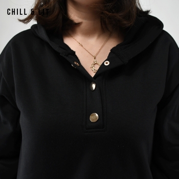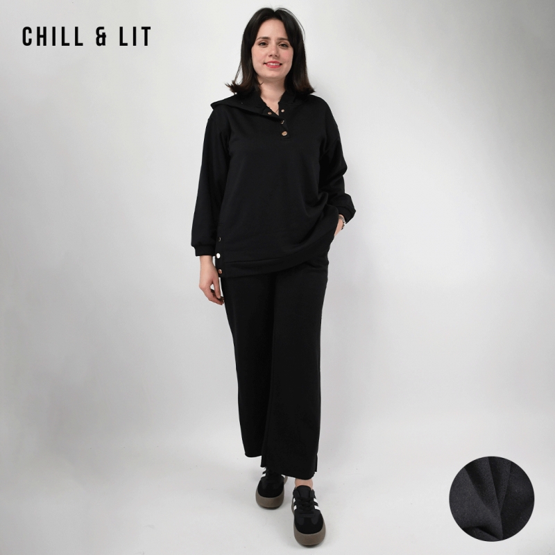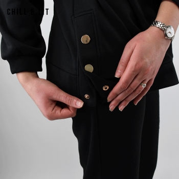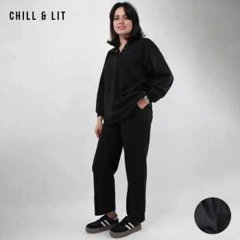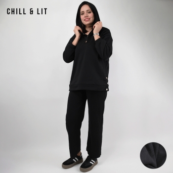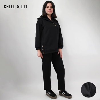 Ensemble Survêtement Femme en Molleton Gratté. Sweat à Capuche, Col à fermeture boutonnée Confectionné dans un Tissu Doux et Chaud, Offrant une Coupe Moderne+ Pantalon Coupe Large, Ajustable à la taille avec Cordons, Deux poches. Très tendance. Le Mannequin Porte La Taille S et Mesure 1m78.