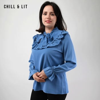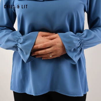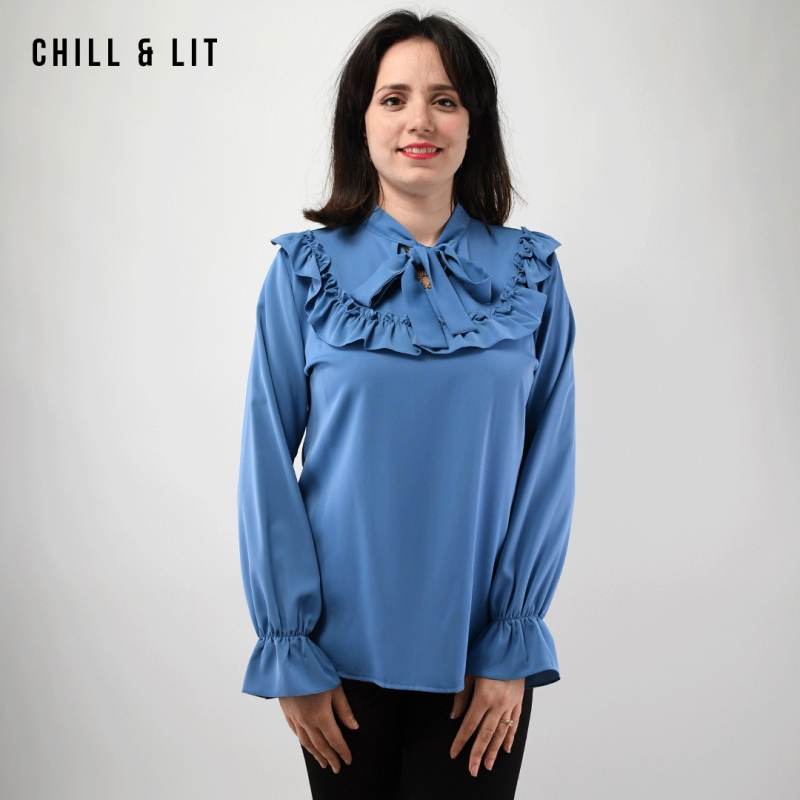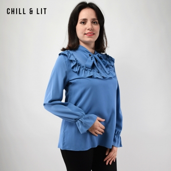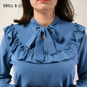 Chemise pour Femme avec Col Cravate, manches élastiquées aux poignets. Très Tendance en Ce Moment. Le Mannequin Porte La Taille 2.