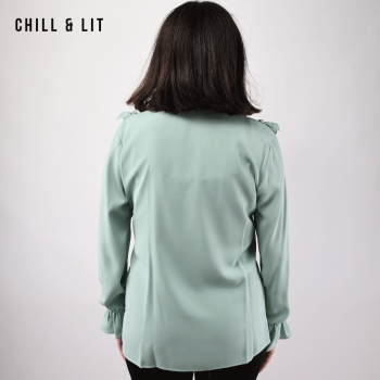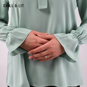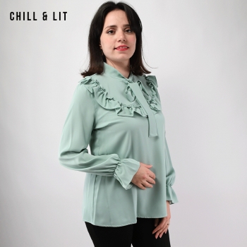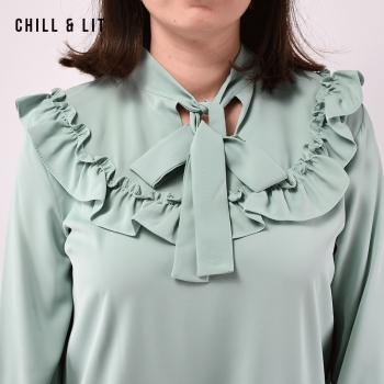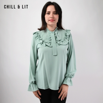 Chemise pour Femme avec Col Cravate, manches élastiquées aux poignets. Très Tendance en Ce Moment. Le Mannequin Porte La Taille 2.
