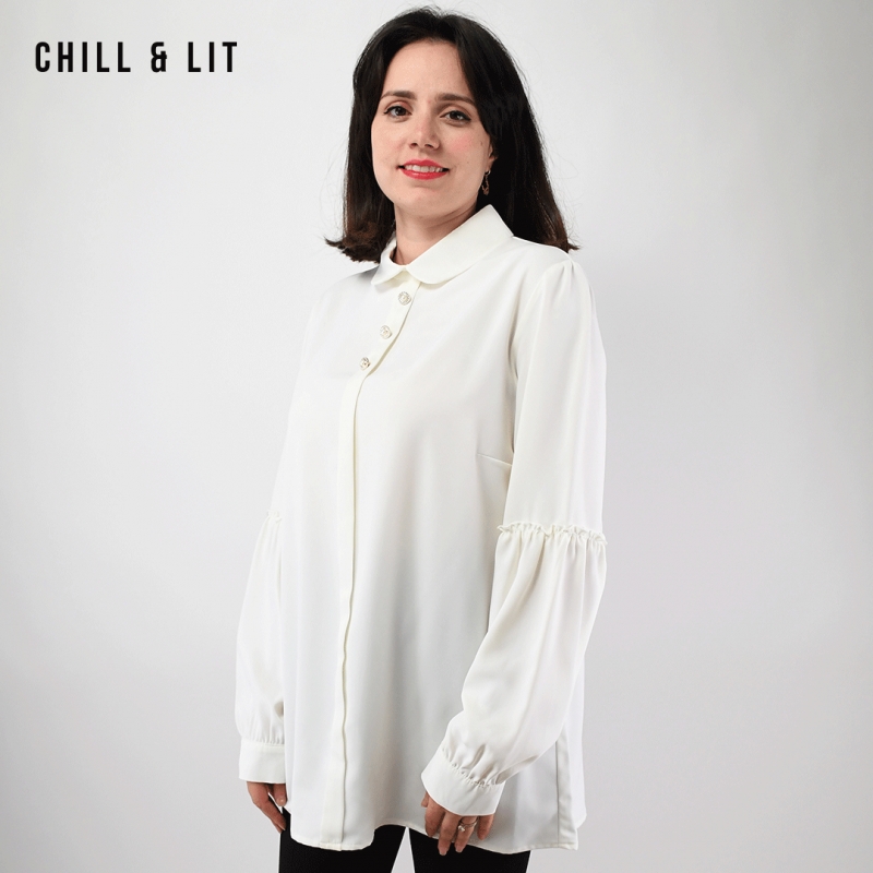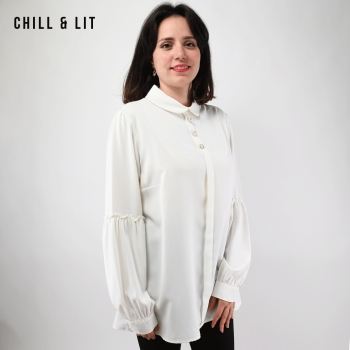 Chemise Longue pour Femme Avec Manches longues bouffantes. Très Tendance en Ce Moment. Le Mannequin Porte La Taille 40.