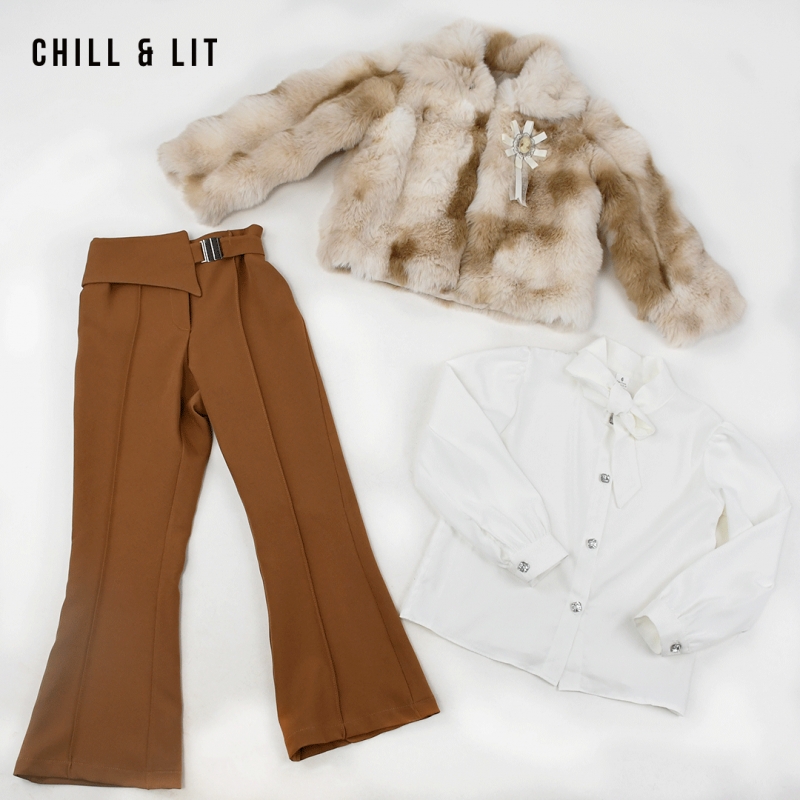 Ensemble Fillette 3 Pièces Manteau en Fourrure Avec broche + Chemise à col Cravate + pantalon patte d’éléphant de Style Chic Confectionné Dans Une Matière Douce et Agréable à Porter, Il Offre un Confort Optimal Tout En Restant élégant. L'ensemble sur La Photo est La taille 6Ans.
