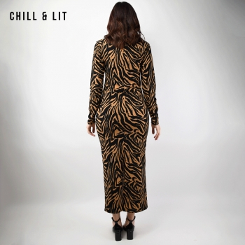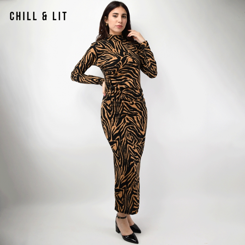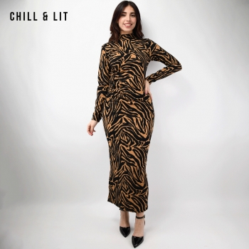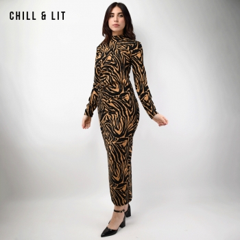 Robe Longue Ajustée pour Femme qui Sublime la Silhouette avec élégance, Dotée d’une Fente au Bas de la Robe. . Hyper Tendances. Le Mannequin Porte La Taille 38. Mesure 1.78cm.